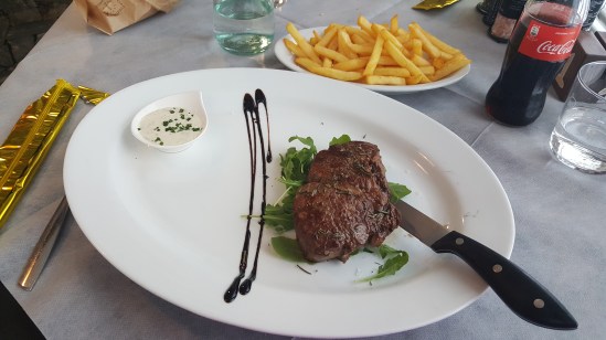 Me, being the picky one, wasn’t sure what half of the menu said, so I played it safe with a steak. It came on a bed of lettuce and Parmesan shavings, with a drizzle of balsamic. And it was amazing. The pictures don’t do them justice, the plates were huge.